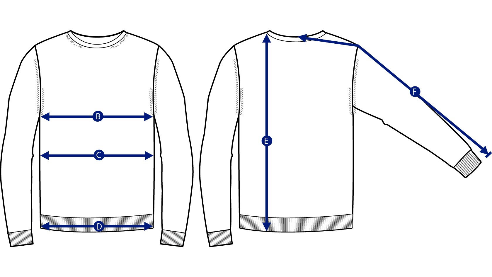 Measure from the middle of the neck, along the top of the sleeve until the sleeve ends (include cuff/rib).