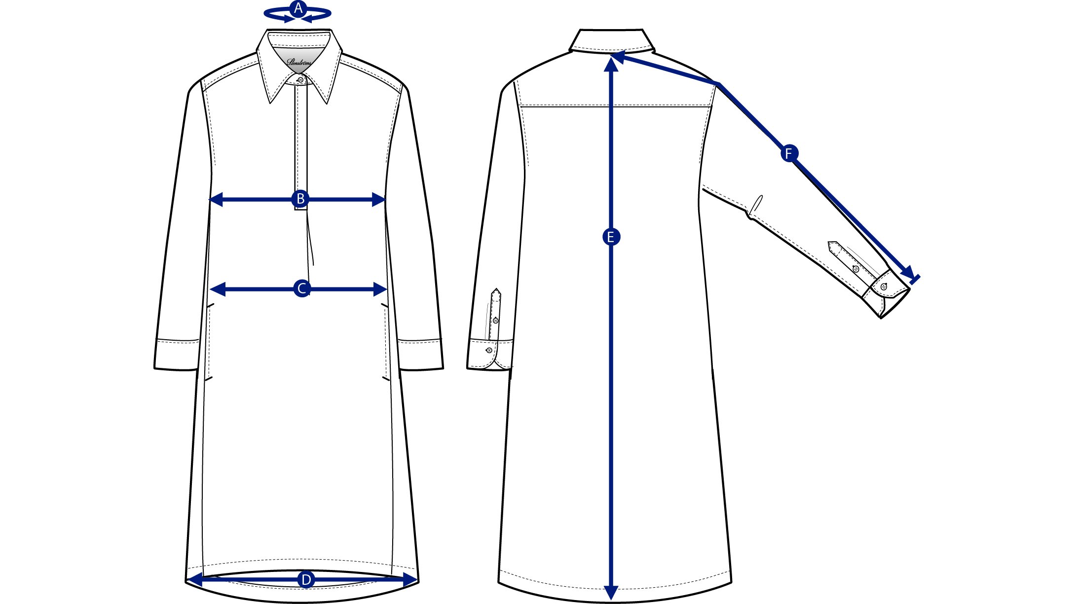 Measure from the middle of the neck, along the top of the sleeve until the sleeve ends (include cuff).