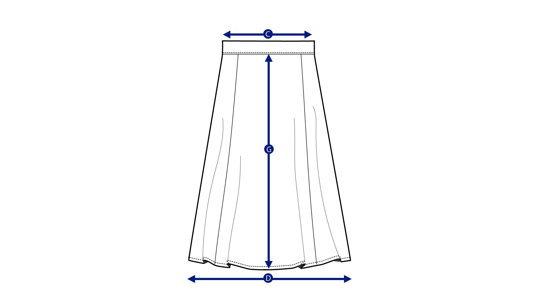 Measure from the lower edge of the waist band, down to the end of the skirt.