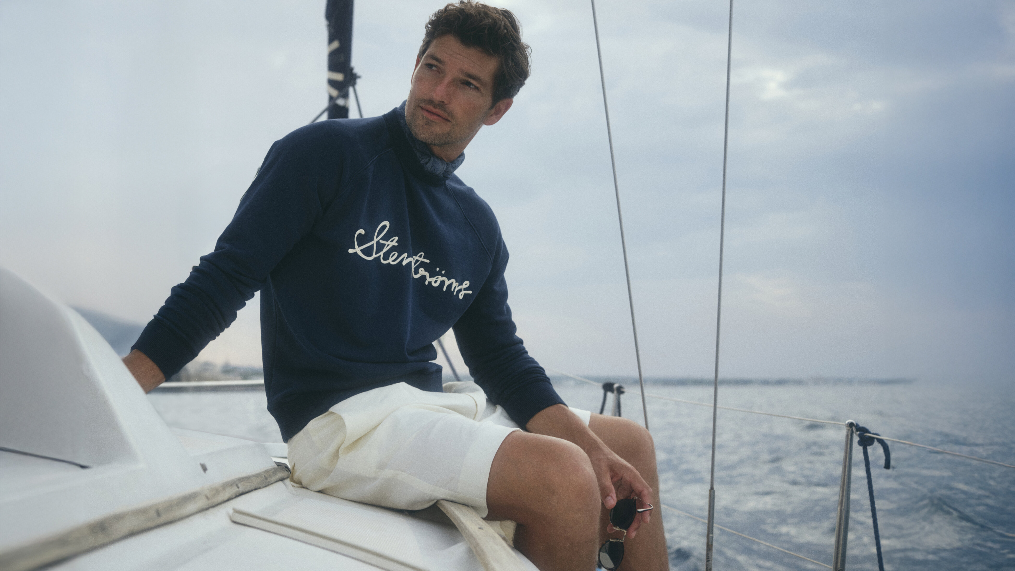 This capsule captures the spirit of coastal ease, blending refined elegance with sporty influences. Soft fabrics, airy layers and refined details create effortless sophistication for sun-soaked days and breezy evenings. The maritime look is anchored in a palette of white, blue and grey melange.